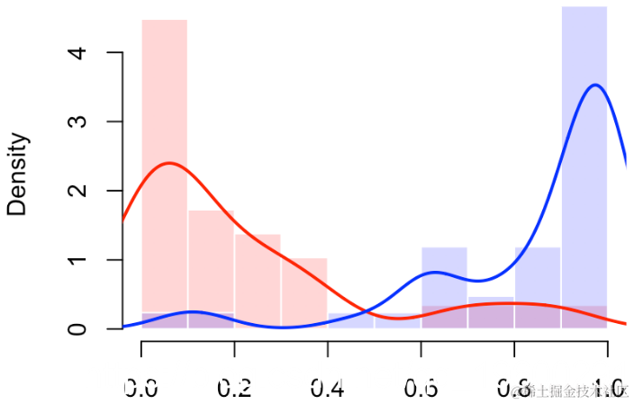这是一个“随机分类器”,我们在单位区间上随机绘制分数