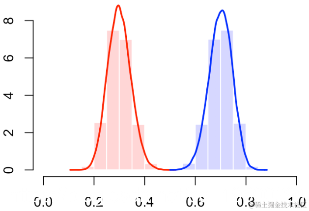 但是,我们这里只有两点:(0,0)和(1,1)。实际上,无论我们选择何种概率,都是这种情况