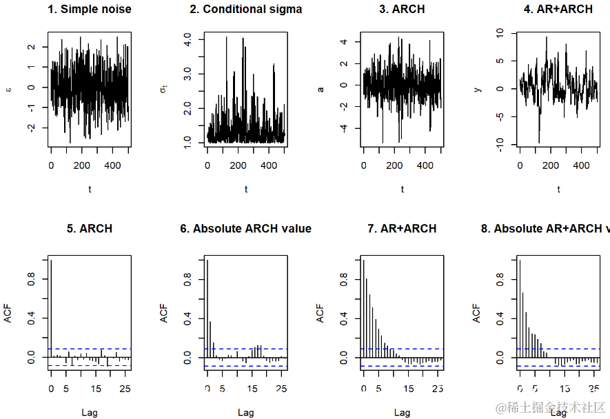 这些模型对于金融时间序列特别有用,因为金融时间序列显示出较大的收益率变动时期以及相对平稳的价格变化的间歇时期。