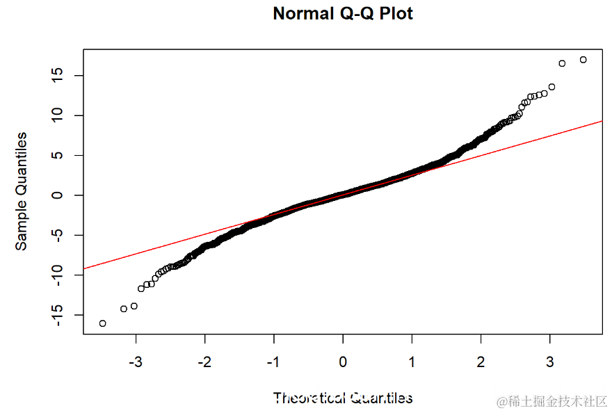 ## 数据的QQ图-显示标准化残基的峰度-不支持正态假设