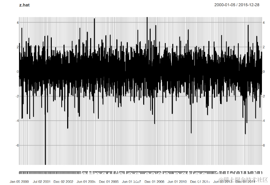 sGarch模型。 garchOrder = c(1,1)表示我们使用残差平方和方差的一期滞后:- 使用