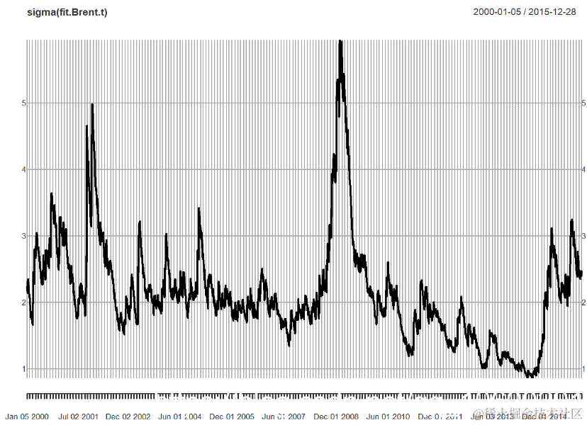 - 看来t分布AR-GARCH解释了原油波动的大部分趋势。