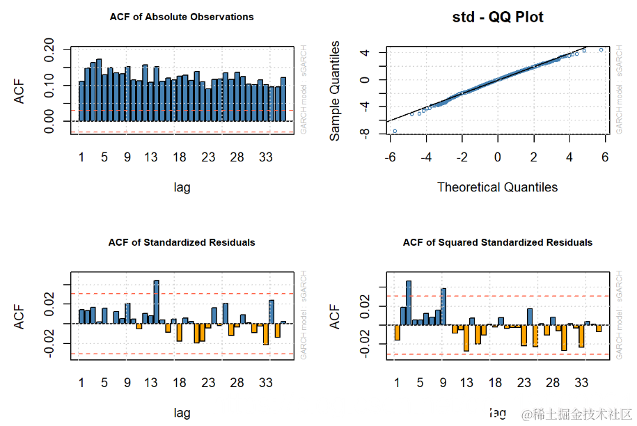 - AR-ARCH估计具有有界的标准化残差(残差/标准误差),从而大大降低了这些误差。