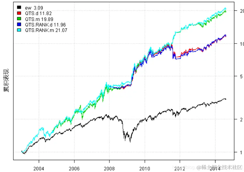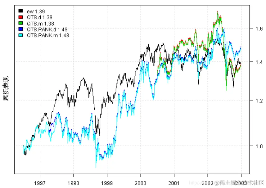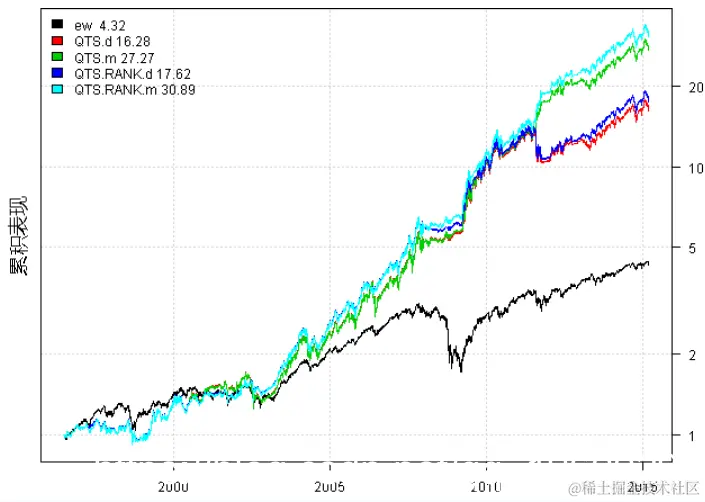 每个季度选择排名最高的共同基金的指标分别为5个月和20天的收益率,每个加权50%。必须通过3个月的移动平均线才能在任何给定时期内选择排名最高的共同基金。
