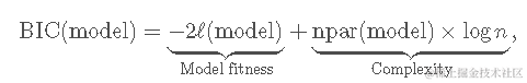 其中是模型的对 数似然度 (模型拟合数据的程度),而