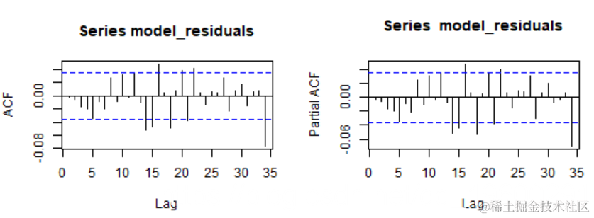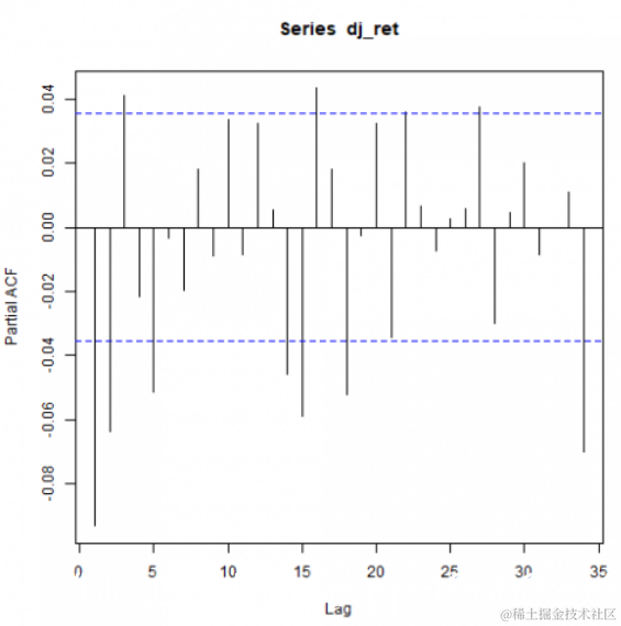 作为结论,我们通过在下面所示的GARCH拟合中指定ARMA(2,2)作为均值模型来继续进行。