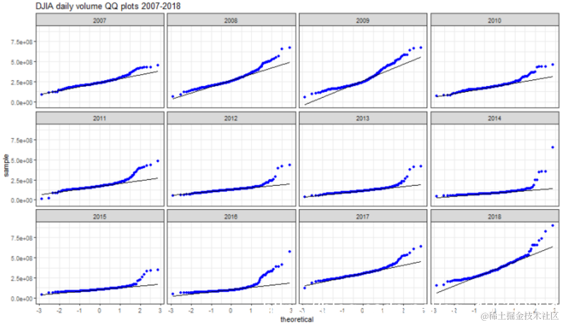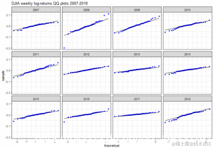6.基于年份的QQ图。