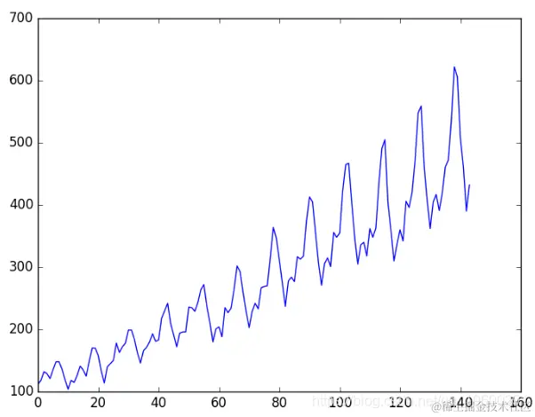 任务是预测国际航空旅客的数量。数据范围为1949年1月至1960年12月,即12年,共进行了144次观测。