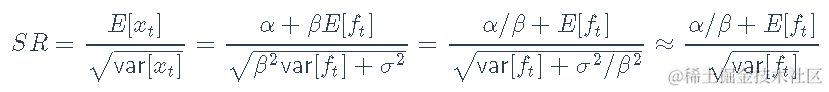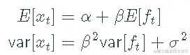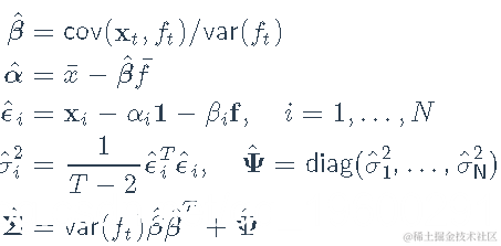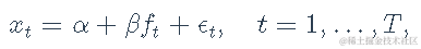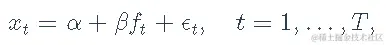 其中显式因子ft为S&P 500指数。我们将做一个简单的最小二乘(LS)回归来估计截距α和加载β: