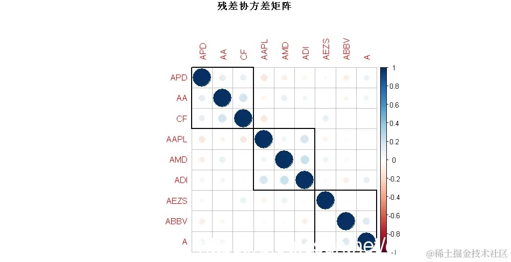 有趣的是,可视化对数收益率[算术处理误差]以及残差Ψ的估计协方差矩阵。让我们从对数收益率的协方差矩阵开始: