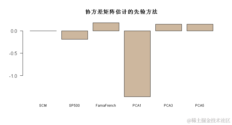 barplot(PRIAL, main = "协方差矩阵估计的先验方法",
