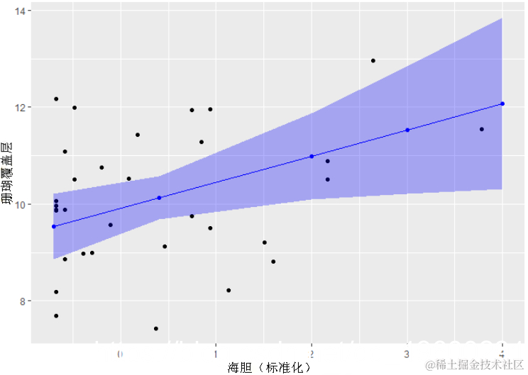labs(x="海胆(标准化)", y="珊瑚覆盖层")
