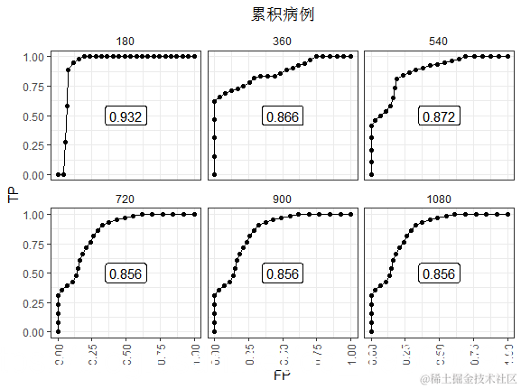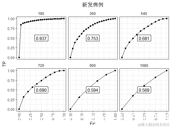 总之,我们研究了时间依赖的ROC及其R实现。累积病例ROC可能与风险 (累积发生率)预测模型的概念更兼容 。新发病例ROC可用于检查时间零标记在预测后续事件时的相关性。