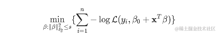 岭回归的启发式方法如下图所示。在背景中,我们可以可视化logistic回归的(二维)对数似然,如果我们将优化问题作为约束优化问题重新布线,蓝色圆圈就是我们的约束:
