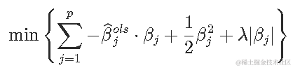我们可以将βj分解为正负部分之和,方法是将βj替换为βj+-βj-,其中βj+,βj-≥0。lasso问题就变成了