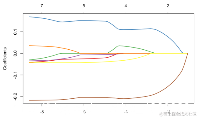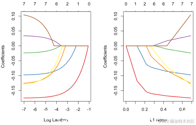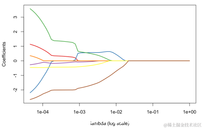 如果我们仔细观察输出中的内容,就可以看到存在变量选择,就某种意义而言,βj,λ= 0,意味着“真的为零”。