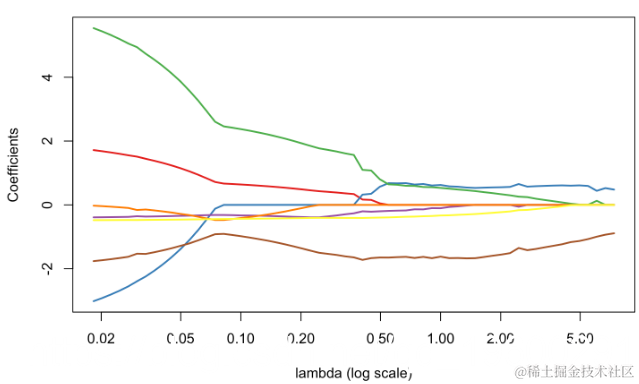 我们可以可视化 βλ的演化(作为 λ的函数)