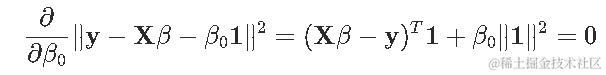 注意,截距不受惩罚。一阶条件是