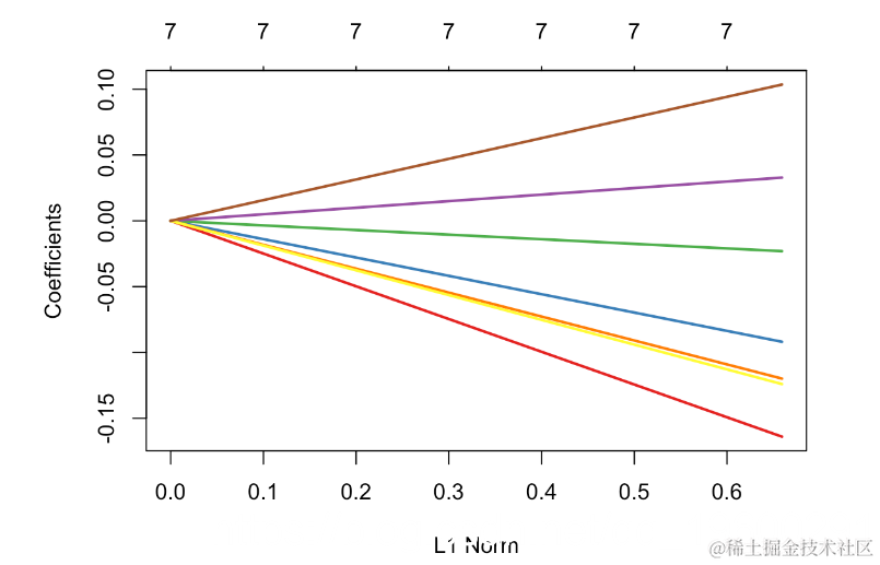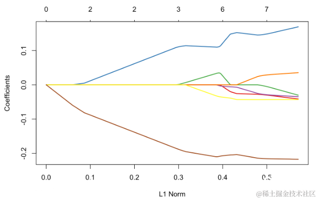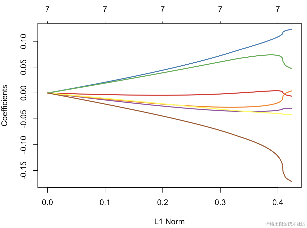 为了进行比较,使用专用于lasso的R程序,我们得到以下内容