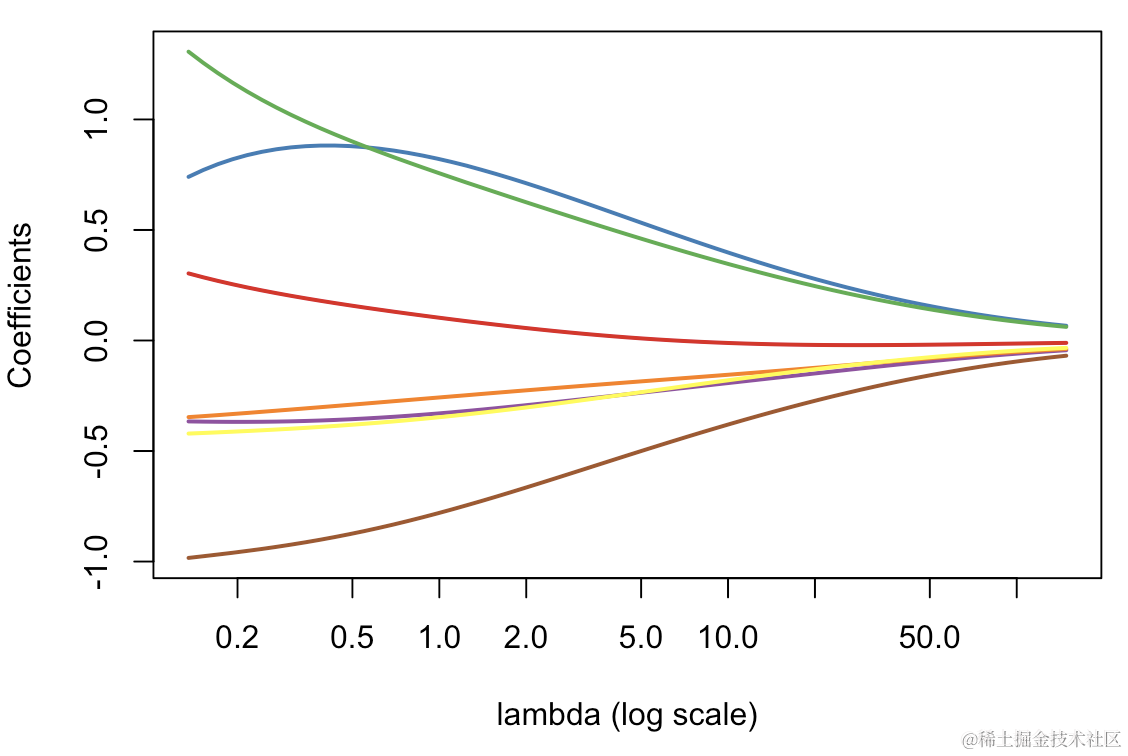 plot(glm_ridge,xvar="lambda",col=colrs,lwd=2)