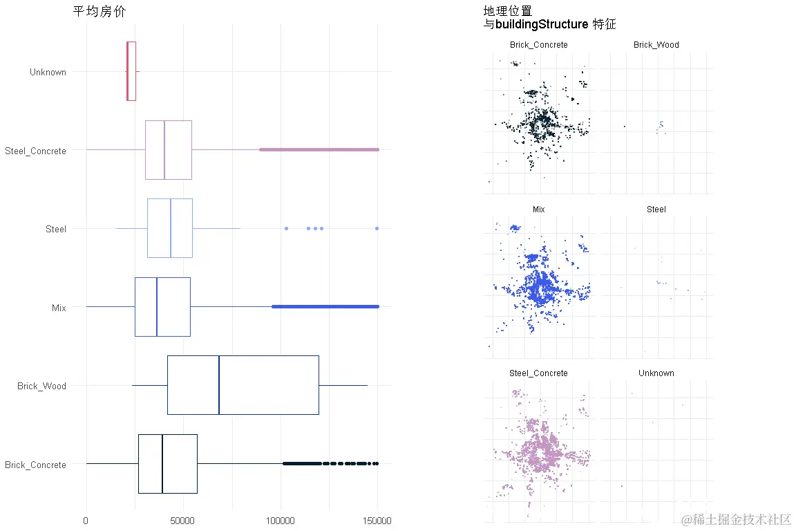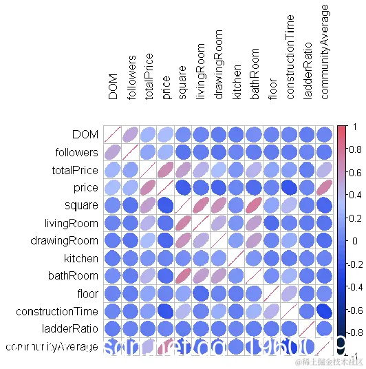 - 其他一些有趣的相关性:communityAverage与建筑时间呈负相关,这意味着在人口密集区建房所需的时间更短
