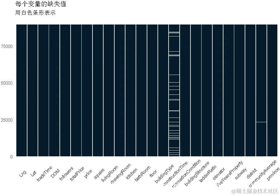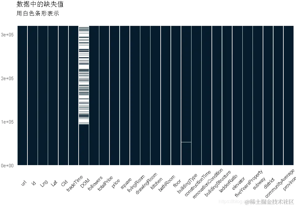 - 否则,buildingType和communityAverage(pop.)中只有几个缺少的值,我决定简单地删除这些值。事实上,它们只占了约30行,而整个数据集的数据量为300k+,因此损失不会太大。