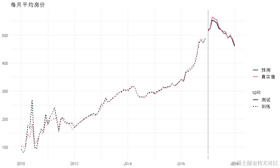 - 对于>2017年:逐月对测试样本并预测平均价格