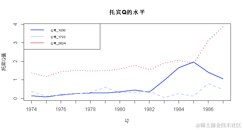 然后计算时变系数,并提取样本中前三家公司的托宾Q水平