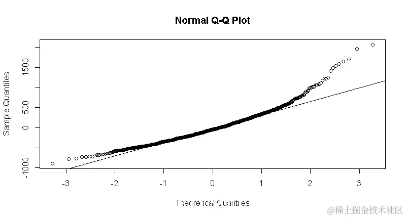 基于上述残差图,可以假定对数工资线性模型与iq的正态分布。
