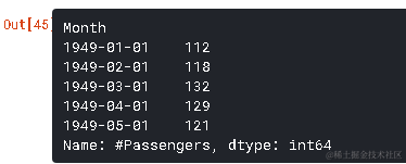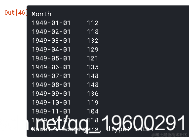现在我们可以看到数据以time对象作为索引,#Passengers作为列。我们可以使用以下命令交叉检查索引的数据类型: