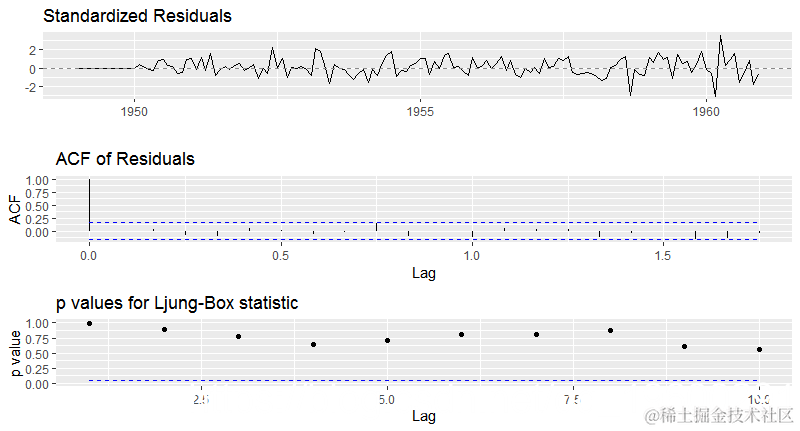 很明显,随着一些季节性变化,数据总体呈上升趋势。然而,可能并不总是能够做出这样的视觉直观推断(我们稍后会看到这样的情况)。因此,更正式地说,我们可以使用以下方法检查平稳性: