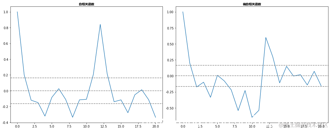 最大滞后为1个月或12个月,表明与12个月周期正相关。