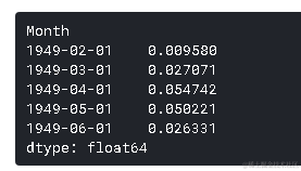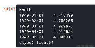 请注意,这些开始于'1949-02-01',而不是第一个月。为什么?这是因为我们取了一个滞后1,第一个元素之前没有任何东西可以减去。将差分转换为对数刻度的方法是将这些差分连续地添加到基数上。一个简单的方法是首先确定索引处的累积和,然后将其添加到基数中。累积总和如下所示: