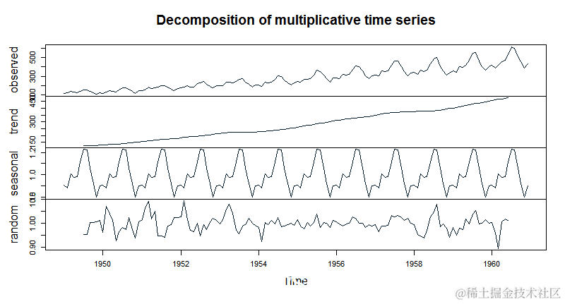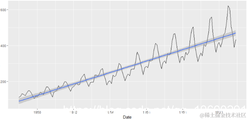 - 趋势-随时间变化的平均值。例如,在这个例子中,我们看到平均而言,乘客人数随着时间的推移而增长。