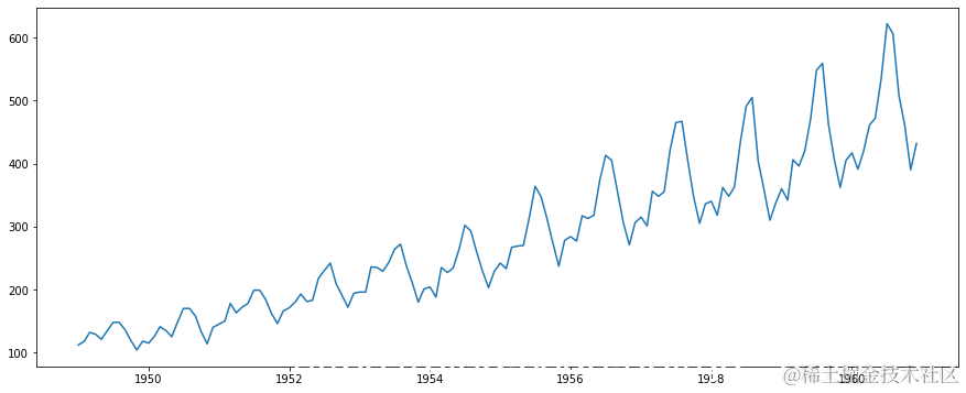 由于其固有的特性,对其进行分析涉及到各种步骤。下面将详细讨论这些问题。让我们从在Python中加载一个TS对象开始。我们使用航空乘客数据。