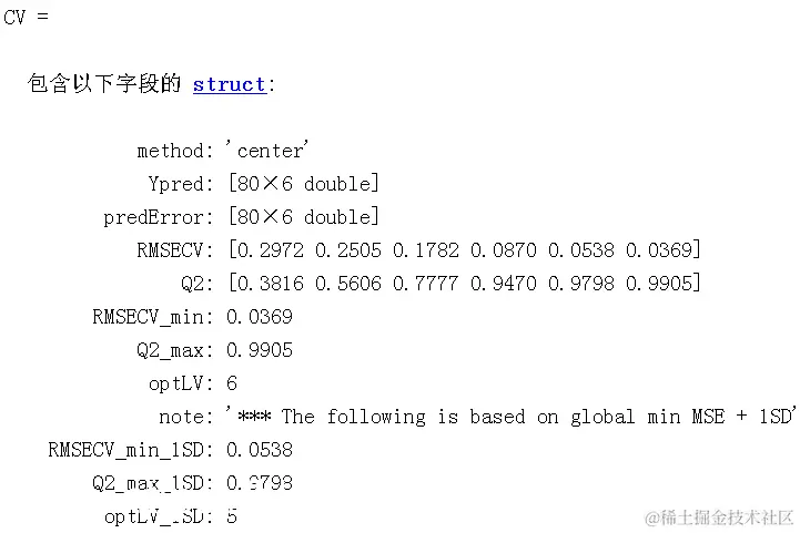 返回的值CV是带有成分列表的结构数据。结果解释。
