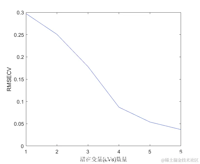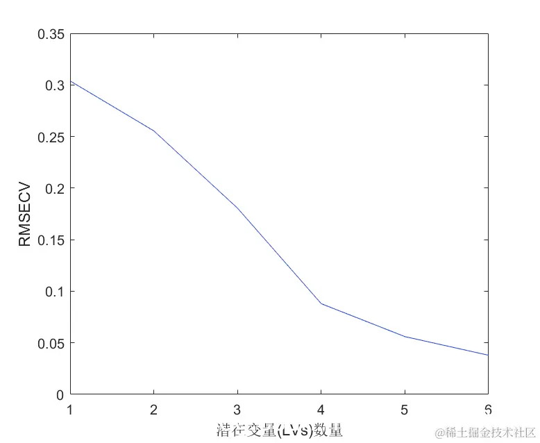 plot(CV.RMSECV) % 绘制每个潜在变量(LVs)数量下的RMSECV值