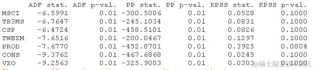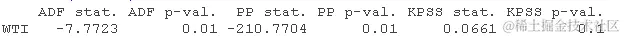 除了PROD的一些问题,所有的时间序列都可以在5%的显著性水平上被认为是平稳的。对于WTI差分也存在ARCH效应。因此,在DMA中考虑指数加权移动平均(EWMA)估计方差似乎是合理的。此外,还可以测试一些遗忘因子。根据建议,对月度时间序列采取κ=0.97。所有的方差都小于1。因此,似乎没有必要对时间序列进行重新标准化。在DMA的估计中,采取initvar=1似乎也足够了。