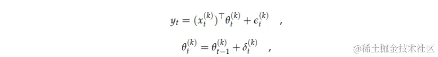 其中k = 1, ... . ,K,θt是回归系数的列向量。假设误差遵循正态分布,即e(k)t∼N(0,V(k)t)和δ(k)t∼N(0,W(k)t)。
