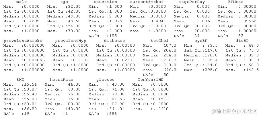 这4240条记录中有3658条是完整的病例,其余的有一些缺失值。