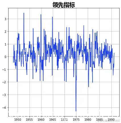这是对Hamilton(1989)介绍马可夫转换模型(Markov -switching model)的开创性论文的复现。该模型是一个4阶的自回归模型,其中过程的平均值在两个区制之间切换。可以这样写。
