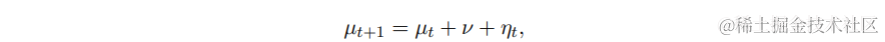 ηt∼N(0, σ2 η)。假设我们没有关于初始状态μ1或斜率ν的先验信息。这个模型可以用状态空间的形式来写,定义为