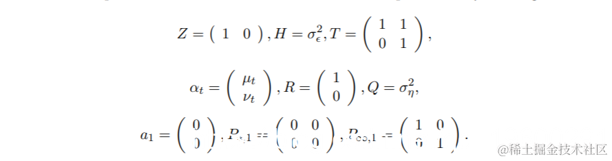 其中ηt∼N(0, σ2 η)如前,t∼N(0, σ2)。这个模型可以用状态空间的形式来写,定义为