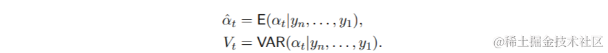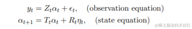 本节将介绍有关高斯状态空间模型理论的关键概念。由于卡尔曼滤波(Kalman filtering)背后的算法主要是基于Durbin和Koopman(2012)以及同一作者的相关文章。对于具有连续状态和离散时间间隔的线性高斯状态空间模型t=1, . . . ,n,我们有