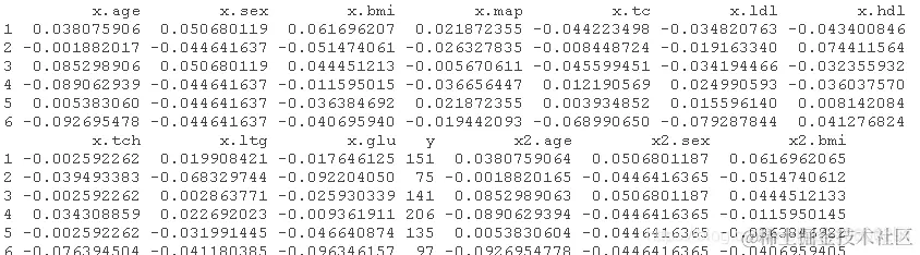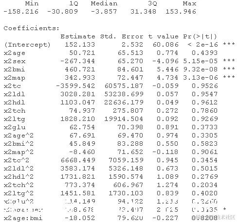 数据集有三个矩阵x、x2和y。x是较小的自变量集,而x2包含完整的自变量集以及二次和交互项。