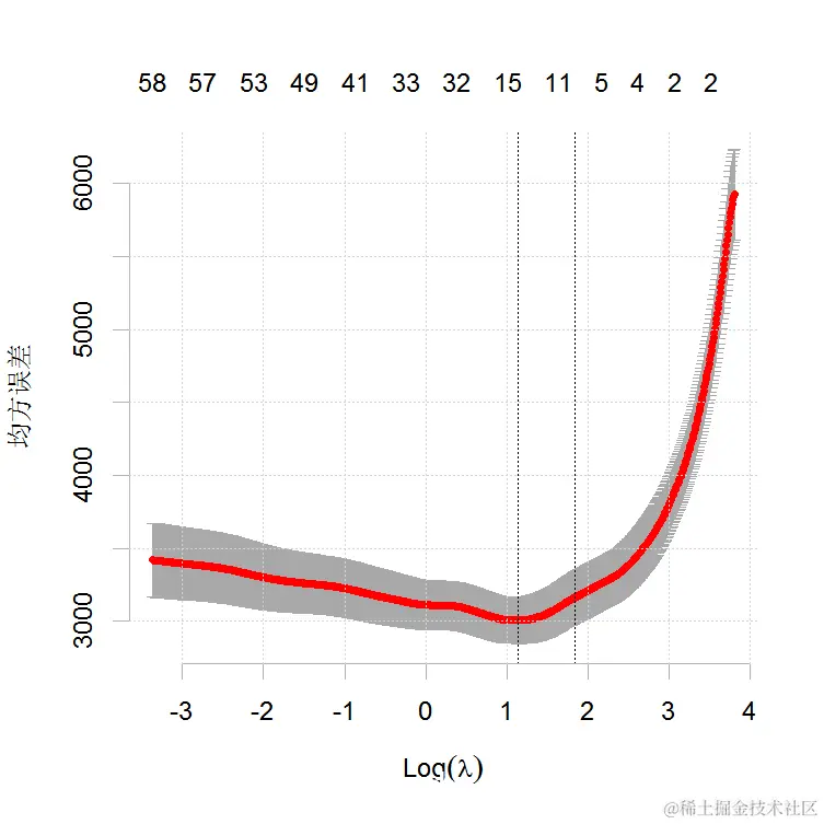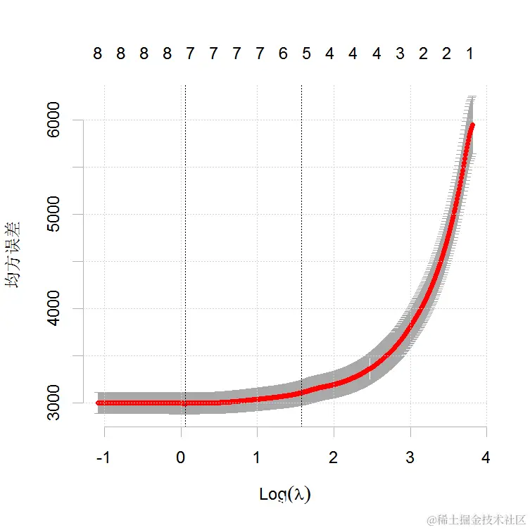 得到交叉验证曲线和最小化平均交叉验证误差的lambda的值。
