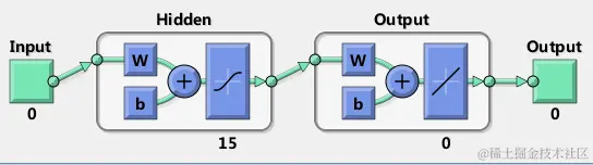 输入和输出的大小为0,因为神经网络还没有被配置为与我们的输入和目标数据相匹配。将在网络被训练时进行。