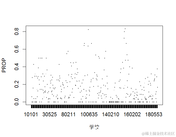 请看下面的图作为例子。该图显示了各学校留级学生的比例。我们可以看到不同学校之间的巨大差异。因此,我们可能需要多层次模型。