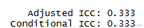 0.33的ICC意味着结果变量的33%的变化可以被数据的聚类结构所解释。这提供了证据表明,与非多层次模型相比,多层次模型可能会对模型的估计产生影响。因此,多层次模型的使用是必要的,也是有保证的。