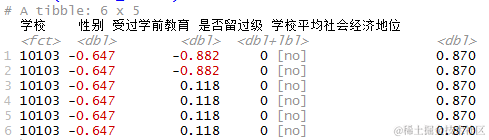 glmer(是否留过级 ~ 性别 + 受过学前教育 + 学校平均社会经济地位 + (1 + 受过学前教育|学校),